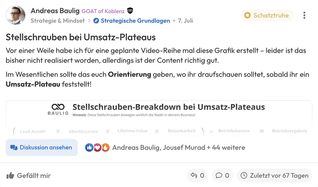 Zusätzlich zum Austausch innerhalb der Community erhältst du direkten Zugang zu Expertenwissen: exklusive Beiträge, Klartext‑Feedback und Interaktionen mit Andreas, Markus, Arben und weiteren Beratern aus unserem Team.