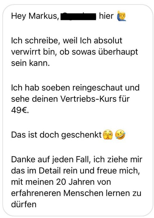 Das hier sind alles echte Klienten von mir, die ihre echte Meinung teilen. Niemand wurde in irgendeiner Form für diese Videos kompensiert! Ich kann dir keine Ergebnisse garantieren. All diese Menschen auf dieser Seite haben hart für ihren Erfolg gearbeitet und ihn sich wirklich verdient! Diese Erfolge sind i.d.R. nur möglich, wenn du vorher 1:1 mit mir innerhalb einer kostenlosen Beratungssession sprichst und meine Strategie kennen lernst. Dies ist KEIN "Schnell und hektisch, reich werden" - Programm. Das hier kommt von einer richtigen (im Handelsregister eingetragenen) Firma, mit richtigen Angestellten und echten Kunden, sowie einem richtigen Firmensitz in der schönen Stadt Koblenz.